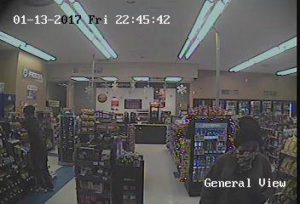 In a release from the OPP, two suspects described as an adult male and an adult female entered the store with the male brandishing a suspected firearm at a female employee. The male suspect was described as white, approximately 25-years old, 5 foot 5 inches, slim build, wearing a black toque and black t-shirt with a logo. The female was described as white, approximately 25-years old, 5 foot 3 inches, heavy build, brown hair wearing a dark hat and bandana.