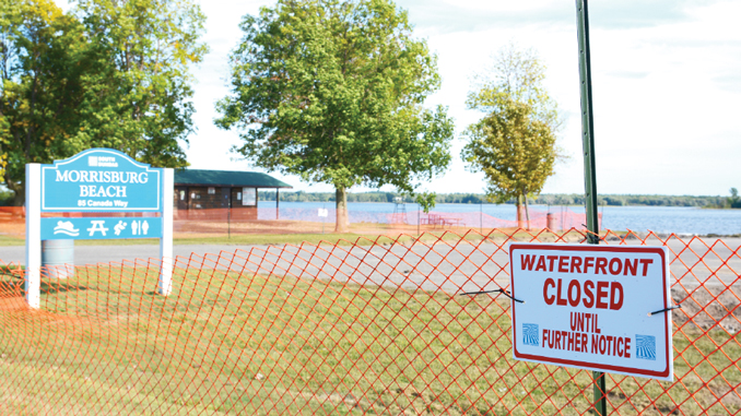 Parts of the Morrisburg waterfront were fenced off this week as construction began on improvements to the Morrisburg beach area. Changes include an expanded parking lot, fixing issues with ditching, and clean up and widening of the beach area itself. (The Leader/Blancher photo)