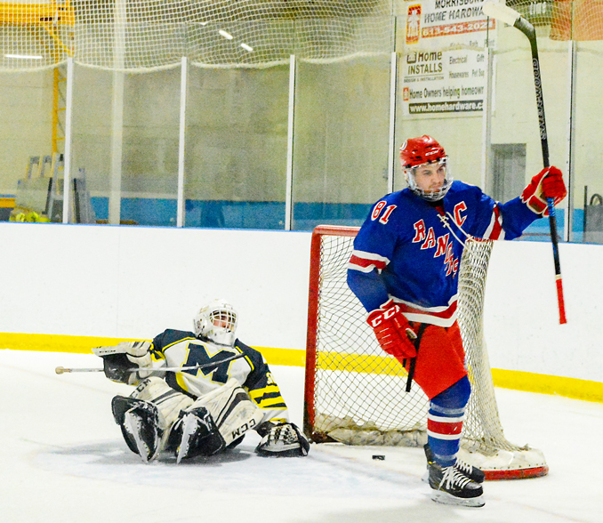 MORRISBURG – In a rare Wednesday game, the Morrisburg Lions and South Grenville Rangers played their last match against each other this season February 13th at the Morrisburg Arena. This “Highway 401” series had seen the Rangers take all five games played between the teams so far this season. The Lions were at a disadvantage from the start with a short bench of just 14 players for the game.