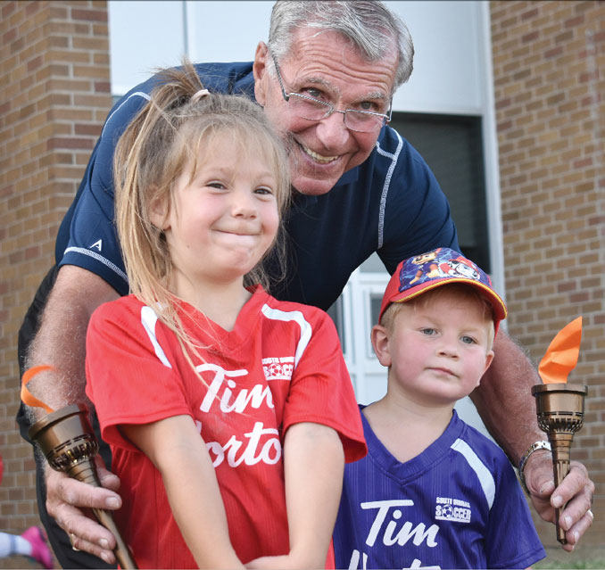 IROQUOIS – Aurora Gordon and Walker McKendry (above) were the last leg in the traditional torch run which opened the 2019 South Dundas Soccer World Cup Tournament on July 26-27 in Iroquois.