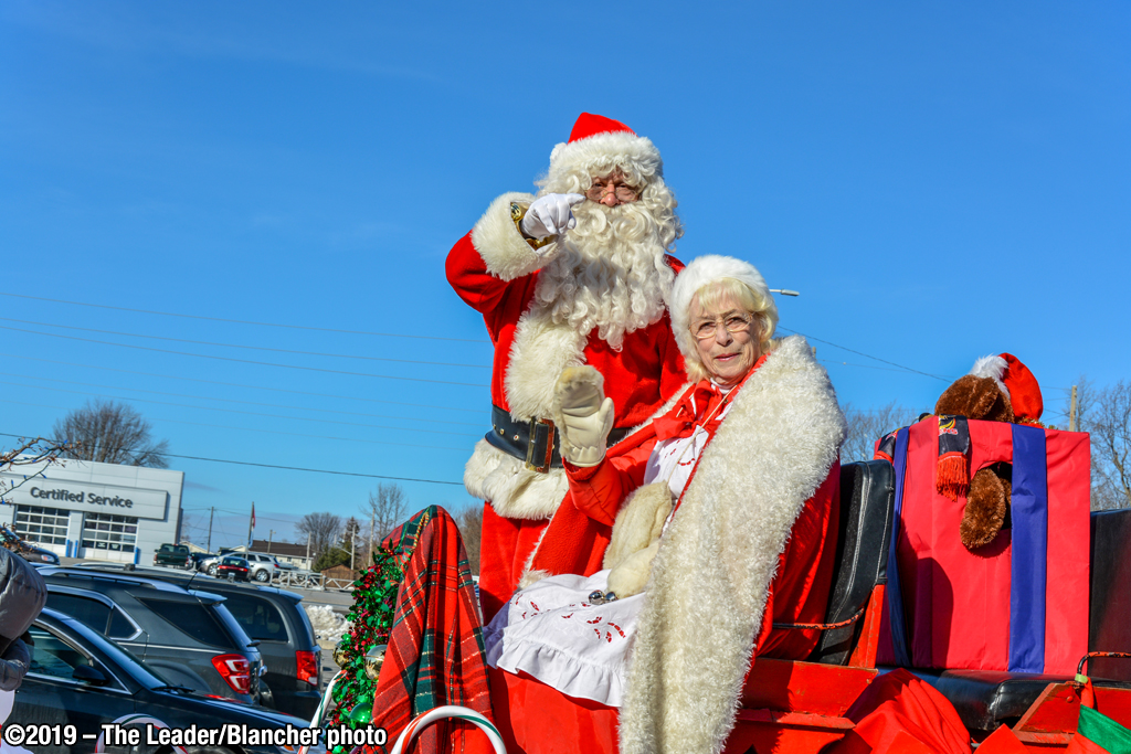 2018-12-01-parade-santapointing Santa and Mrs. Claus keeping The Leader reporters on the right list (the good list of course).