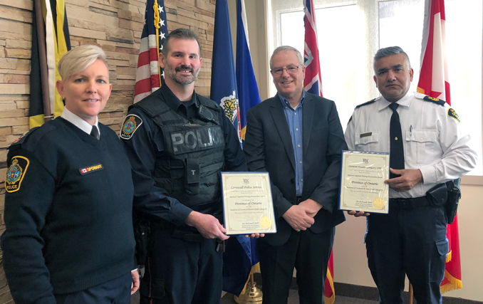 certificates of congratulations to Cornwall Police Service Deputy Chief of Police Shawna