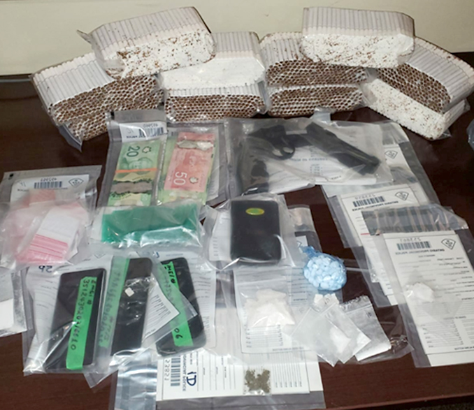 OPP executed two search warrants, one at a residence on Caldwell Drive in Iroquois, the other on South Branch Road north of Iroquois. Officers found and seized a quantity of drugs including suspected cocaine, fentanyl, and methamphetamine. Police also found cash and paraphernalia associated with drug trafficking.