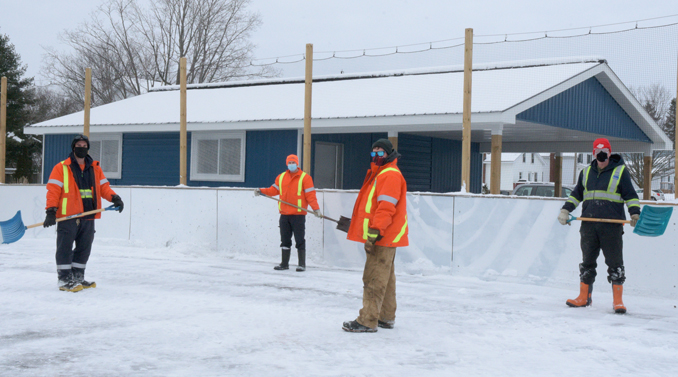 And the work begins – Staff from the South Dundas Recreation Department were working away on January 22nd preparing the Iroquois outdoor rink for flooding. Iroquois is one of three outdoor rinks to open by January 30th. Pictured above in this physically-distanced photo are (l-r): Kent Nugent, Parks and Recreation Supervisor Austin Marcellus, Warren Ball, and Chris ‘Crusty’ Wooters. (The Leader/Blancher photo)