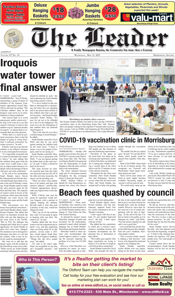 The tone of the delegation to council was divisive with its implication that only Iroquois’ residents opinions matter in this debate. Many people living in South Dundas, but not directly in that village, have opinions and views that matter just as much as those living in town. That water tower serves as a welcome sign to our South Dundas community to anyone arriving here. This is not a positive reflection of what we want South Dundas to be in 2021, and in the future.