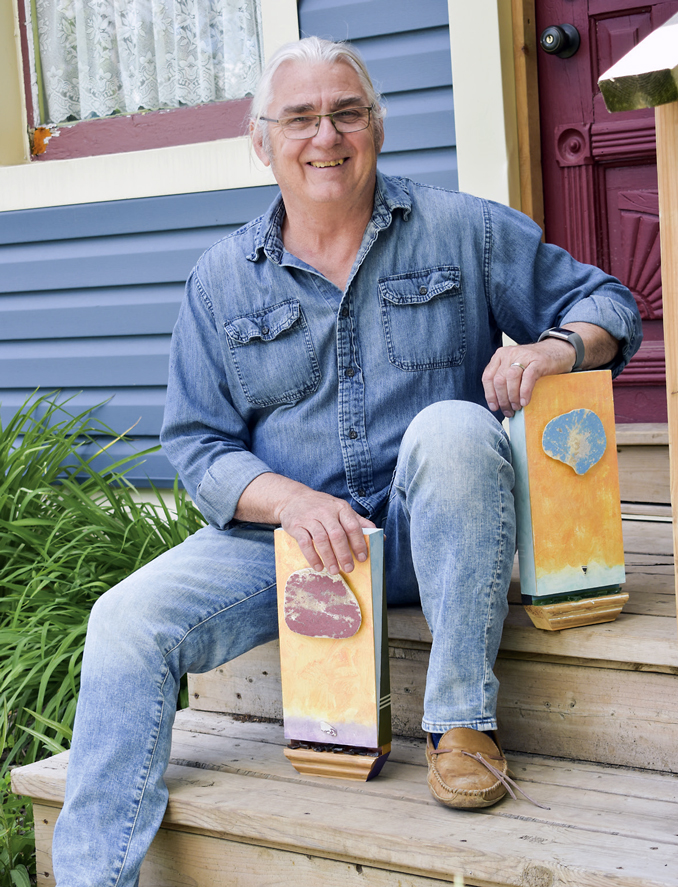 “I think I will aim for a simpler life. An appreciation of things has always driven me, an appreciation of a special ‘found’ object, its history. I had some fragments of fibre glass picked up from a beach in the Bay of Fundy, and I had expected to go back there for more objects. But of course, once COVID came, I couldn’t. Instead, I found myself wandering out and finding other objects along the banks of the St. Lawrence: I combined them with the objects from Fundy. It was as if the pieces suddenly created a dialogue for me, and a new work was created. I “find” things on the internet now, objects that I can incorporate into my art.”