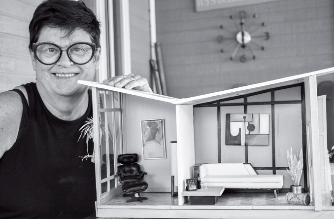 “I needed a project this winter, and I simply decided to start renovating (daughter) Liz’s 35 year old doll house,” Laurin explained. “I had actually made this house out of a kit all those years ago. It was very Victorian. I decided to “modernize” it. As I worked, I began to realize just how much fun it was to make miniature furniture, to create miniature accessories, and to create miniature original paintings: everything had to be done from scratch. Soon I was putting another kit together, miniaturizing it as well. I love to change, to evolve. No artist ever wants to do the same thing all the time.”