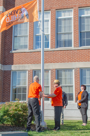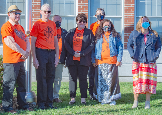 After a minute of silent reflection, the orange Every Child Matters flag was raised by Thompson and Byvelds at the municipal centre in Morrisburg.