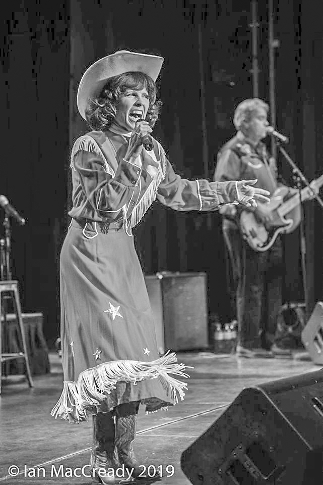 The diminutive Way (wearing some spectacular “red” costumes) breathed passion into that great Patsy Cline music. Only rarely off the stage, she used her voice as a rich instrument: her vocal range really is extraordinary. She is energized on the stage. Whether she was singing “Always” or the rueful “I’ve Got Your Picture,” she really seemed to capture the unique soul of Patsy Cline. Throughout the evening, Leisa charmed the audience often encouraging people to sing and clap along in beloved numbers.