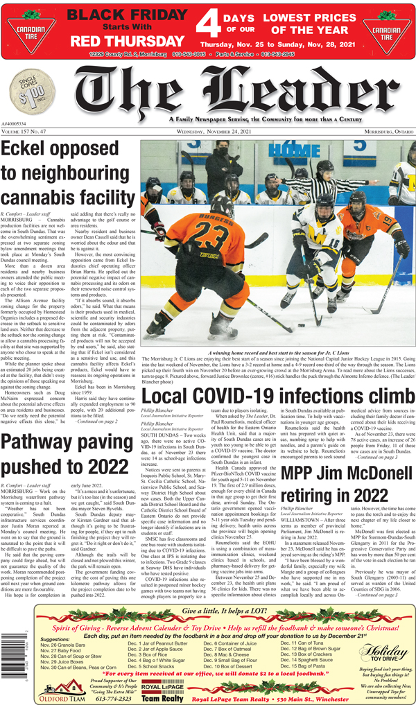 - Morrisburg Waterfront pathway paving pushed to 2022;