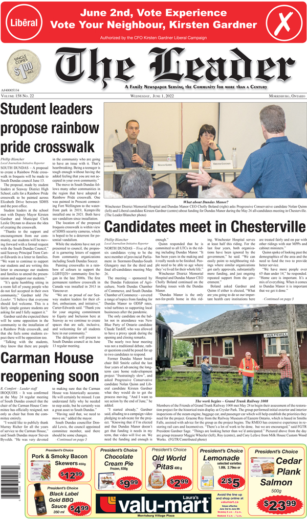 Pick up your copy of The Leader, in-stores now. Select stories published online Wednesday due to the June 2 Provincial Election. Stay tuned on The Leader’s website and social media channels for local results Thursday night.