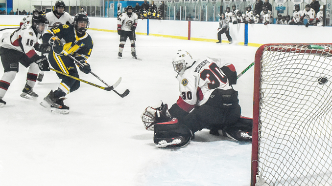 A pair of power play goals scored by the Eagles had them in control of the game, with a 2-0 lead. The Lions tied the game in the opening two minutes of the second period. Connor Manderson’s power play goal got Morrisburg on the scoreboard, with Josh Price’s goal 53 seconds later levelling the match.