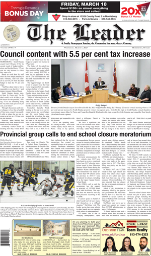 - Hefty Budget – Council content with 5.5 per cent tax increase in South Dundas;