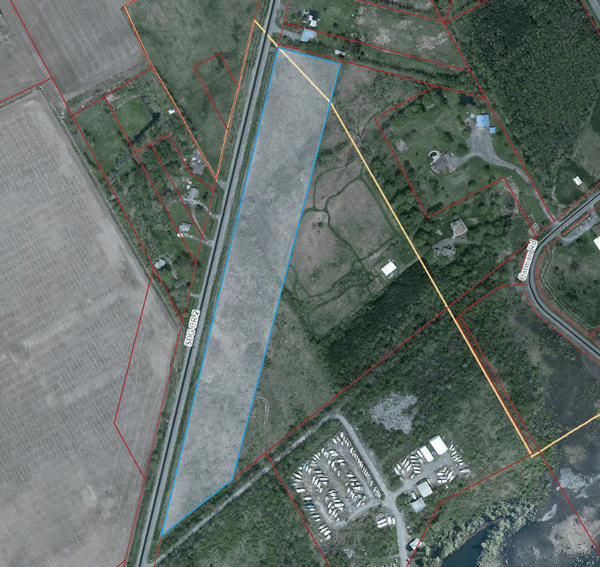 jun21-housing2 The easternmost five acres of this 14 acre parcel of land on the south side of County Road 2, west of Broken Second Road in Iroquois. (Screencapture/South Dundas)