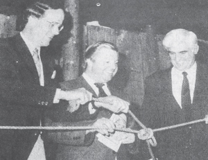 Three hundred theatre goers came out for the opening night of the new theatre and watched as Bob Cook (SLPC general manager), Doug Grenkie, president of the board, and MP and communications minister, Ed Lumley, officially undid the slip knot that opened the Playhouse. Granted, in the weeks ahead, shows sometimes still had to halt in mid scene when too much rain seeped through the tent roof. And there were some startling moments when a snake was discovered in the ladies rest room: raccoons occasionally had to be “escorted” off the premises. But the Playhouse board persevered.