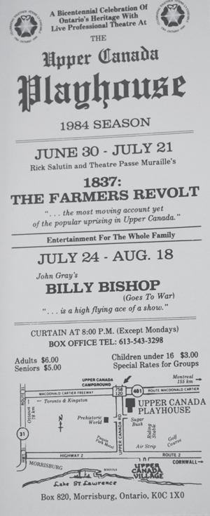 As Jane McAllister, wife of original board member John recalled, “The first productions, ‘The Farmers Revolt’ and ‘Billy Bishop,’ in my mind were still among the best theatre productions ever. The sets were amazing and innovative considering the extremely small budget. Those shows were excellent.”