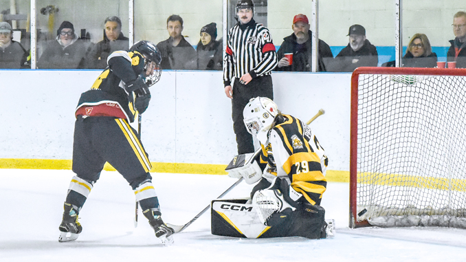 mar20-lions Lions’ captain Justice Brownlee opened scoring in the first period with this shot past Cougars’ goalie Tristan Paquette. Brownlee would go on to score both goals for Morrisburg in the 5-2 loss Friday night. (The Leader/Blancher photo) Like this:Like Loading...