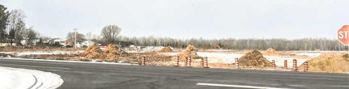 Significant pre-servicing ground clearing work was in full action last week, changing the visual landscape of the 30 acre development area on the north side of County Road 2 in the vicinity of Elm Street.