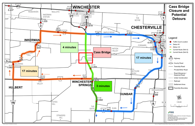 Closing the bridge to all traffic was estimated to save SDG $671,000 on the project, but would result in a 17-minute detour for traffic. CR 31 is a primary commuter route to Ottawa and land-ambulance route from South Dundas to Winchester District Memorial Hospital.