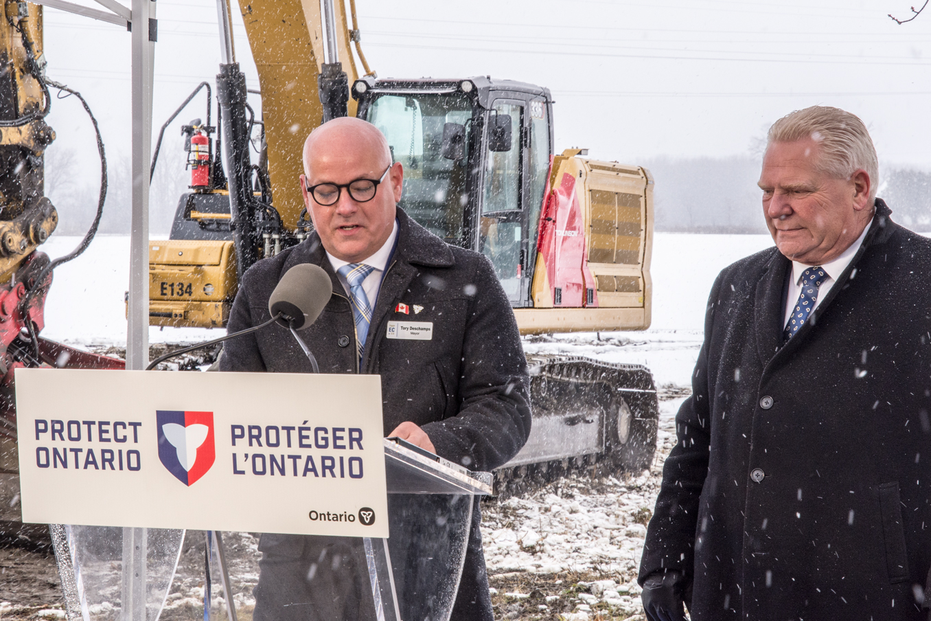 nov19-skyview2BESS-deschamps Edwardsburgh-Cardinal Mayor Tory Deschamps speaks about the historic investment in the township.