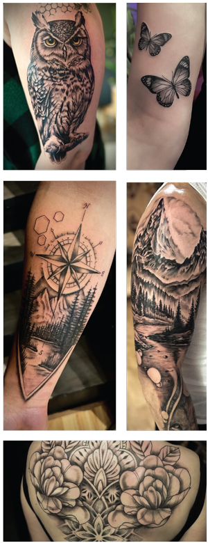 Barkley initially found his way to tattooing after working as an arborist. “I just wasn’t really happy with my life then,” he said, so he started to look for a tattoo artist willing to take on an apprentice.