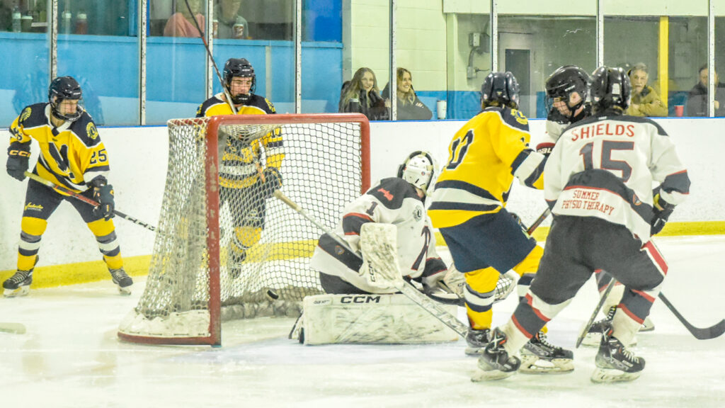 Morrisburg landed on the scoreboard first, three minutes into the second period. Robbie Wilgosh (from Marc-Olivier McCarthy) scored on a Lions’ power-play to make it 1-0. A pair of goals late in the period from McCarthy extended the Lions’ lead to 3-0.
