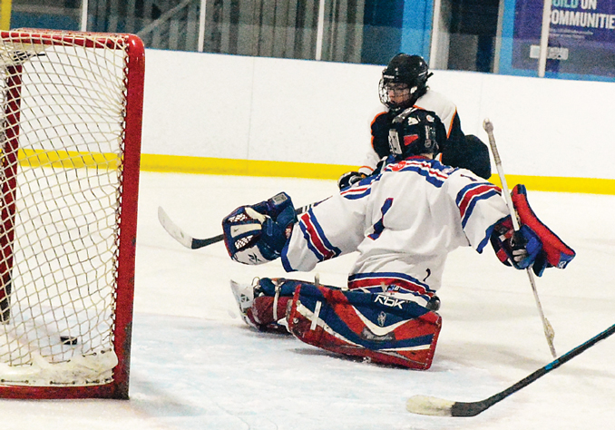 First goal, on a roll – Seaway Intermediate forward Raymond Fisher-Froats found the back of the net in the opening goal of March 25th tournament hosted by Seaway. Seaway doubled St. Mark’s 8-4 and went undefeated in the tournament. (The Leader/Blancher photo)